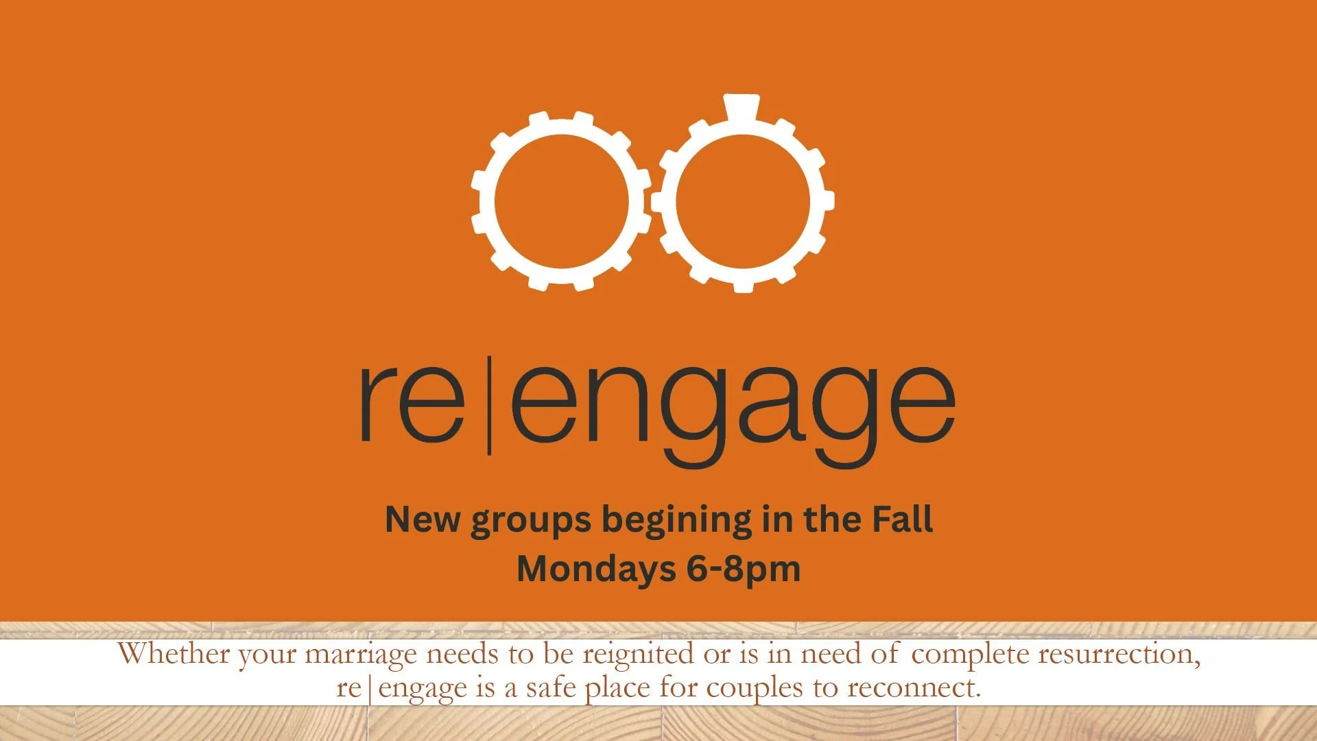 Whether your marriage needs to be reignited or is in need of complete resurrection, Re-Engage is a safe place for couples to reconnect. New classes will begin in the Fall. Contact Angela Czaja for more information at [email protected].